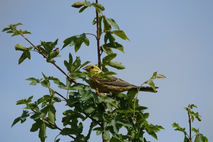 On frosty, sunny days, fields sown with winter bird seed sometime have a blizzard of bright yellow birds (plus flocks of those ‘little brown jobs’) just as over-winter stubble fields would have had in the past. Here, local ornithologists have trapped and colour-ringed yellowhammers to track them by sight (captured on cameras) around the area.