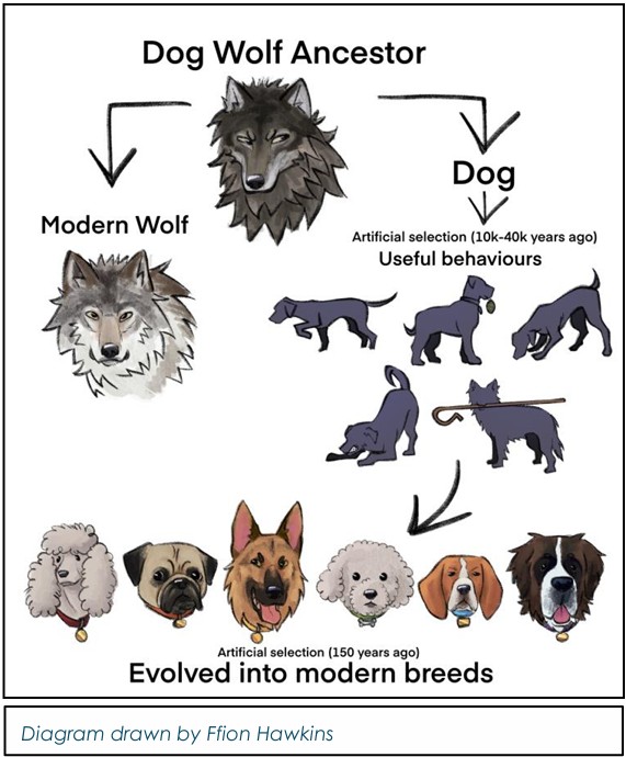 hundred years ago. In 1870 the Kennel clubs were founded and began to keep certain types and breeds ‘pure’. Today we have over 400 different breeds all adapted by human intervention and selective breeding.